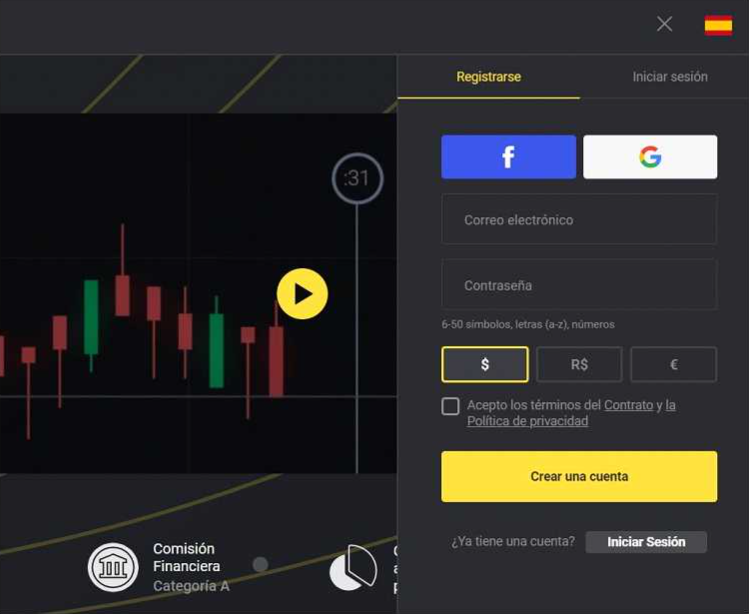 El registro en la plataforma Binomo es un proceso muy sencillo. Primero, se debe acceder a la web https://binomo.com/ y ubicar el módulo “Registrarse” en la parte superior derecha de la página de inicio. Luego ingresar las credenciales de Google o Facebook si deseas realizar el registro rápido. En otro caso, puedes realizar el registro tradicional ingresando una dirección de correo válida y contraseña. Luego elegir el tipo de moneda con la cual operar (dólar, euro o moneda local ), aceptar los términos y condiciones y al hacer clic en “Crear una cuenta” va a llegar en su buzón de correo un link de activación de cuenta. Al activar, ¡ya puede comenzar a operar utilizando la cuenta demo!