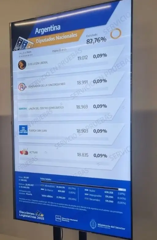 Durante el ensayo técnico, se mostró un cuadro de resultados titulado “Argentina – Diputados Nacionales”. Este distrito, sin embargo, no existe constitucionalmente. La presentación de los datos de esta manera excluiría de la suma nacional al menos nueve provincias con fuerte presencia peronista.