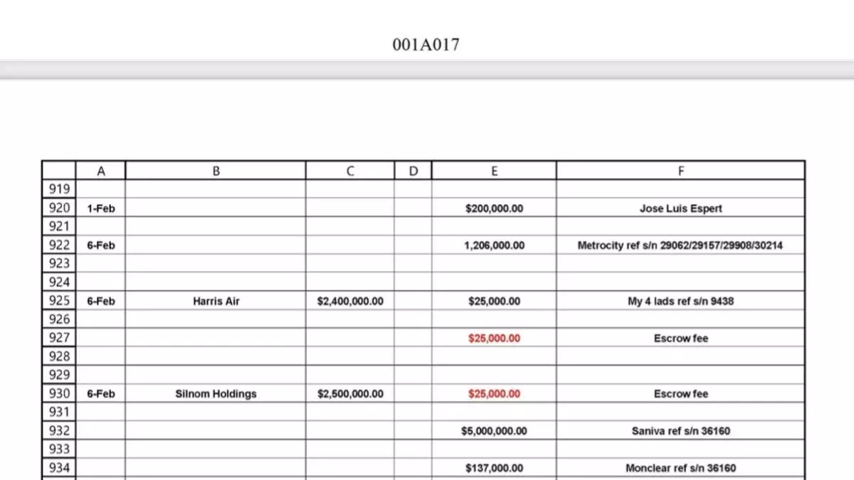 Según la contabilidad clandestina atribuida al fideicomiso Aircraft Guarantee Corp (gestionado por Mercer-Erwin y Machado) el nombre de Espert aparece en el renglón 920 del registro como receptor de la transferencia.